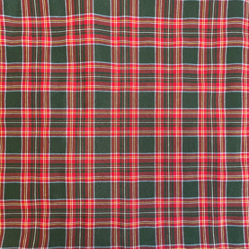 Scopri il fascino senza tempo del Tessuto Tartan Scozzese Verde a Motivo Piccolo. Con il suo classico disegno a quadri rossi, verdi, gialli e bianc...