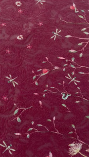 Cotone Damascato con Fantasia Floreale a Pannelli 90 cm - Bordeaux